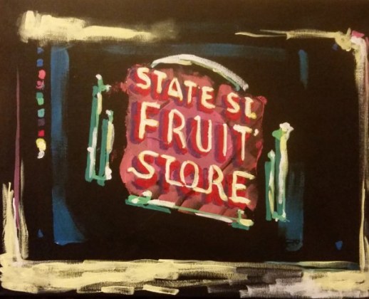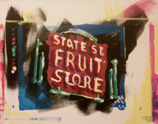 #8. State Street Fruit. 20 x 16 inches. Acrylic on canvas.