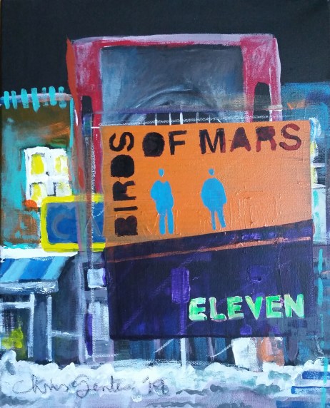#19. Birds of Mars 005. 20×16 inches. Mixed media on canvas.