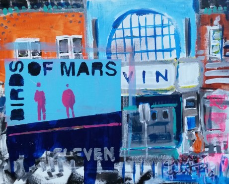 #27. Birds of Mars 013. 20×16 inches. Mixed media on canvas.